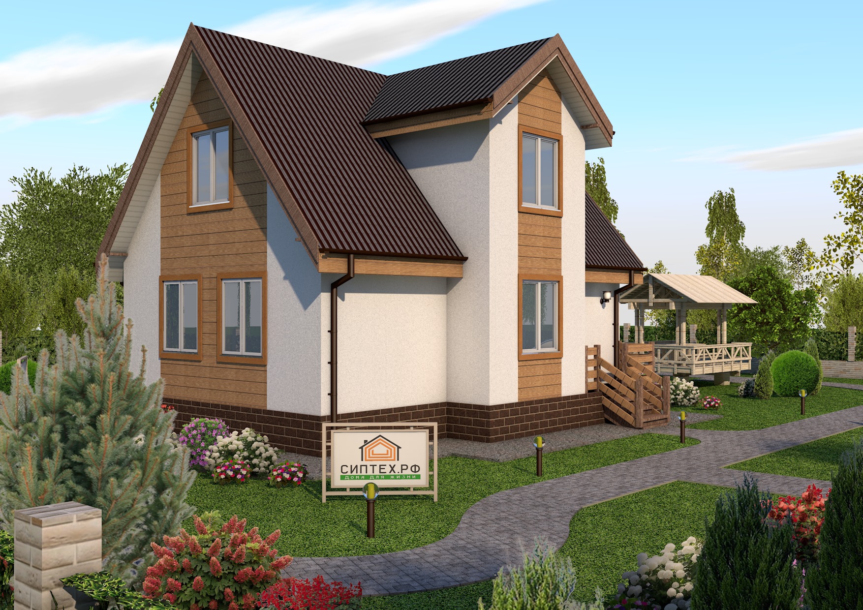 - Внешние стены 1-го и 2-го эт. - СИП панели 174 мм.