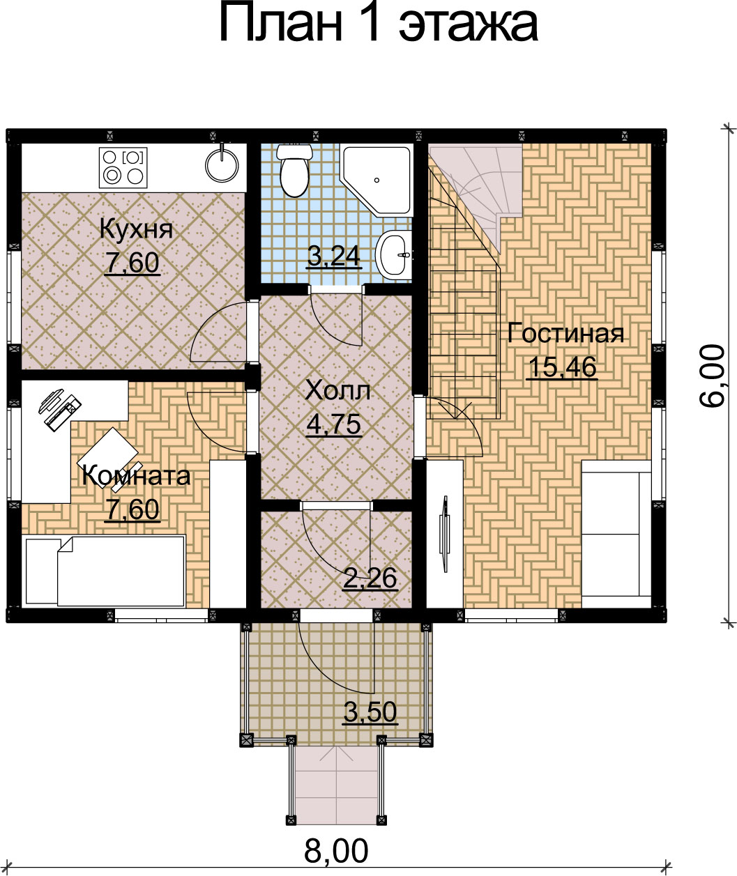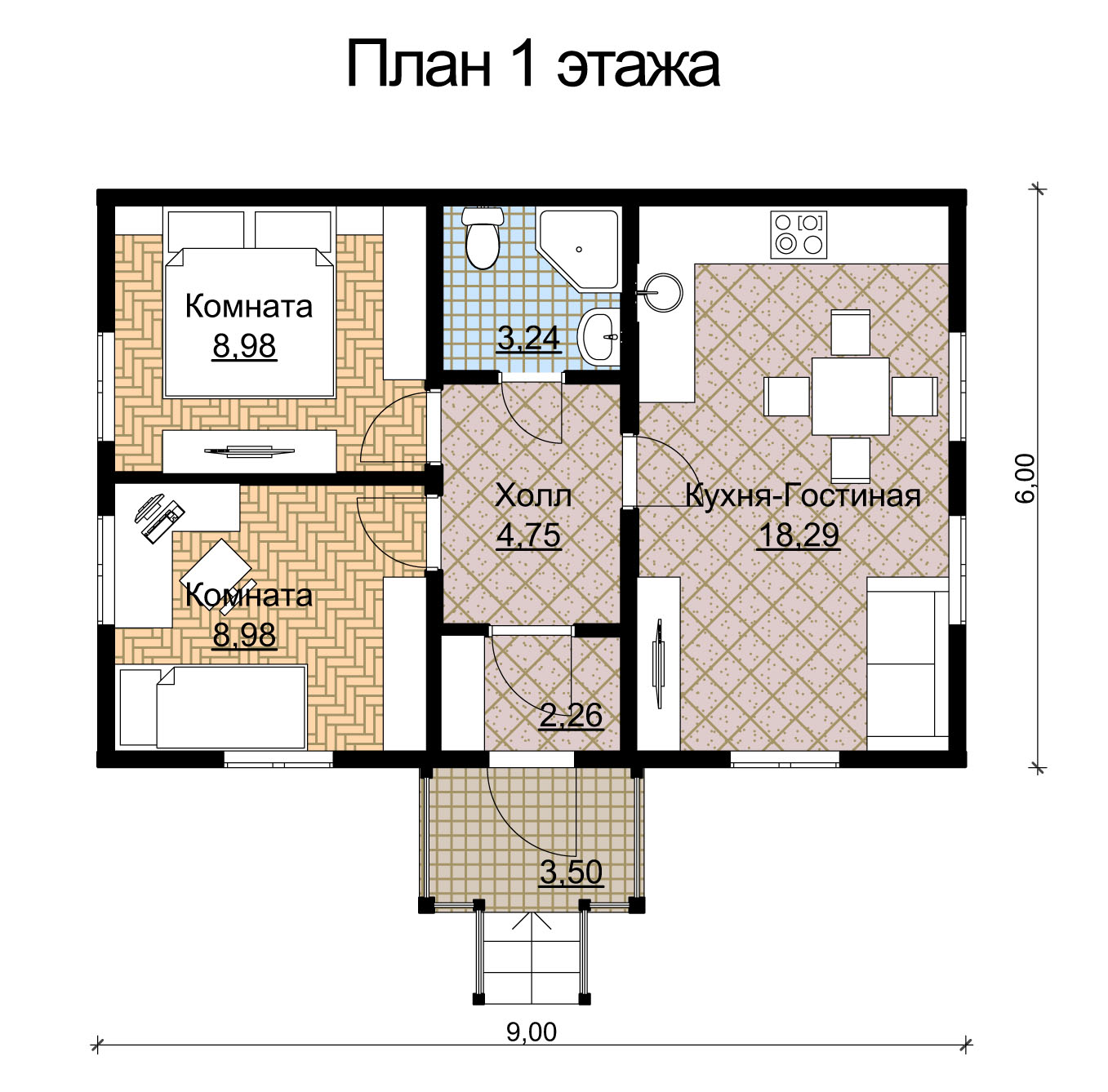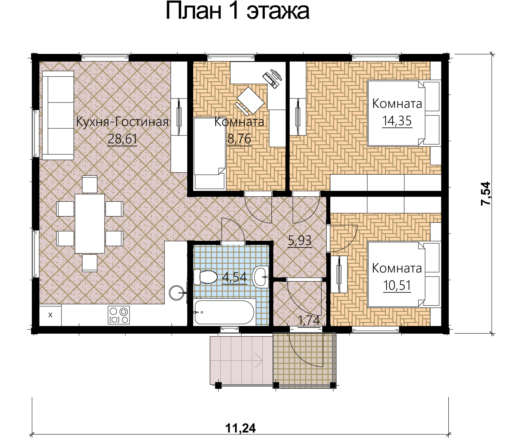 общая площадь - 54 м2