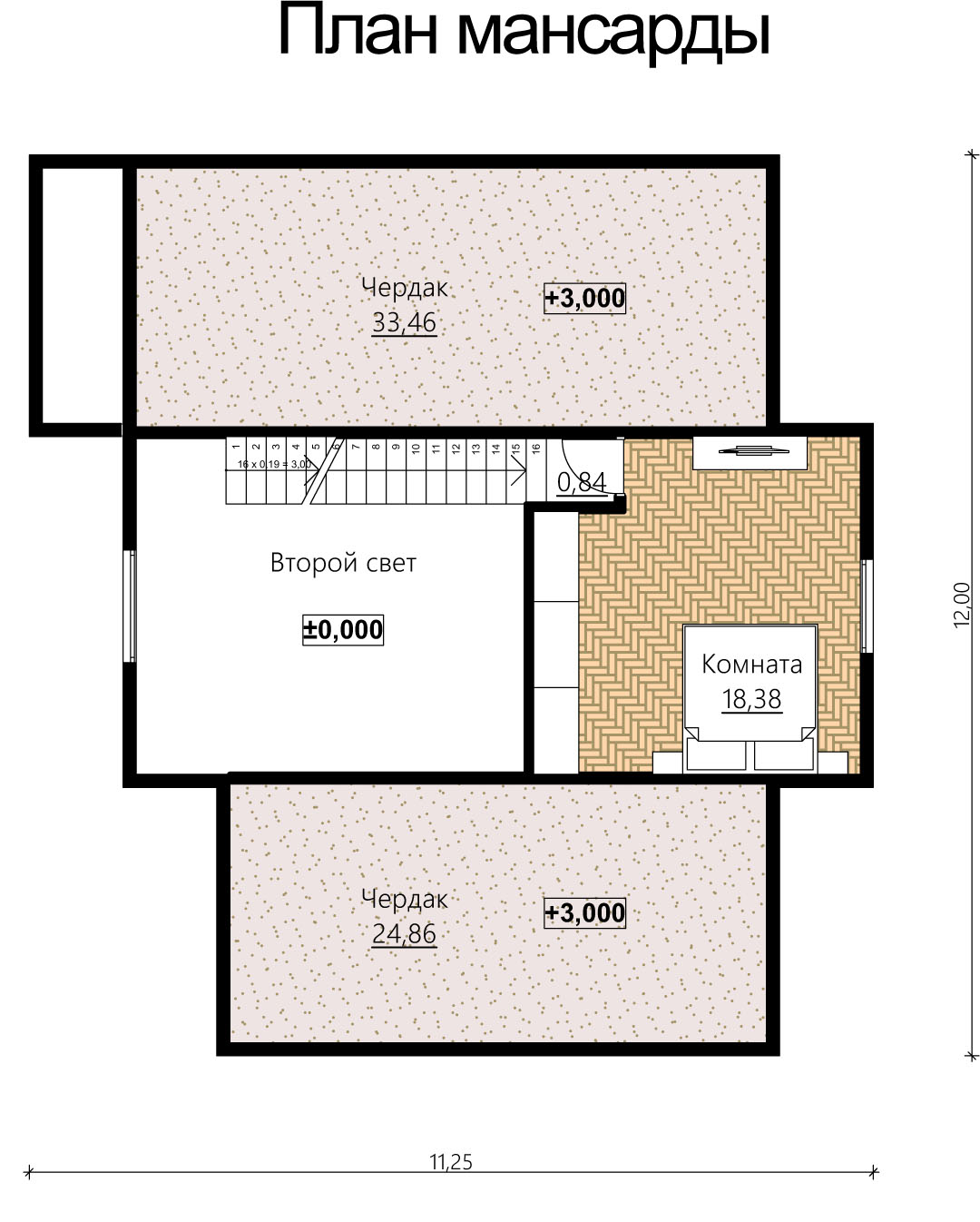 - Чердачное перекрытие - балочное, утепление 200 мм.